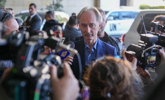 يواصل المبعوث الخاص للأمم المتحدة إلى سوريا غير بيدرسون محادثاته مع سلطات تصريف الأعمال هناك حيث التقى هذا الأسبوع وزير الخارجية أسعد الشيباني. وأعرب بيدرسون عن تقديره للمناقشات المتعمقة بشأن الانتقال من مرحلة تصريف الأعمال إلى عملية سياسية بقيادة سورية شاملة وموثوقة ومعترف بها من قبل الشعب السوري والمجتمع الدولي.