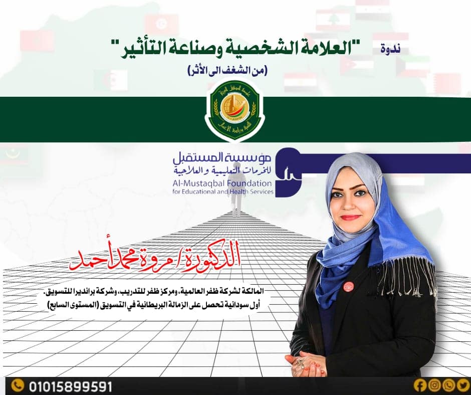 قدّمت الندوة الدكتورة مروة محمد أحمد، صاحبة شركة ظفر العالمية، التي تناولت بأسلوب علمي وشيق مفهوم العلامة الشخصية (Personal Brand) ودورها في تحقيق التأثير والتميّز في الحياة المهنية والاجتماعية، مؤكدة أن صناعة التأثير تبدأ من إدراك الذات وبناء الهوية الشخصية على أسس من القيم والمصداقية والإبداع.
