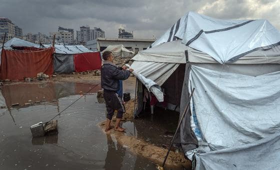 أفاد مكتب الأمم المتحدة لتنسيق الشؤون الإنسانية (أوتشا) بأن الأمطار الغزيرة في غزة أغرقت الخيام، وأتلفت ممتلكات السكان، وزادت من المخاطر الصحية، بما في ذلك انخفاض حرارة الجسم لدى الرضع والأمراض المرتبطة بطفح مياه الصرف الصحي.